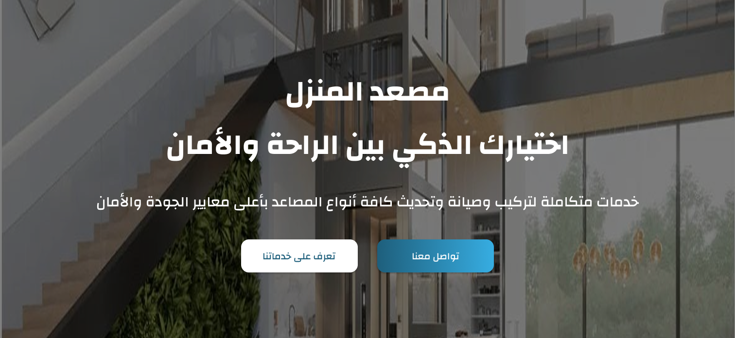 أكثر من 20 عام من الخبرة في مجال تركيب وصيانة وتحديث المصاعد بجميع أنواعها نعمل في "مصعد المنزل" على تقديم حلول ذكية وآمنة تناسب مختلف أنواع المباني والمساحات ونلتزم بأعلى معايير السلامة والكفاءة لضمان راحة وسلامة عملائنا.